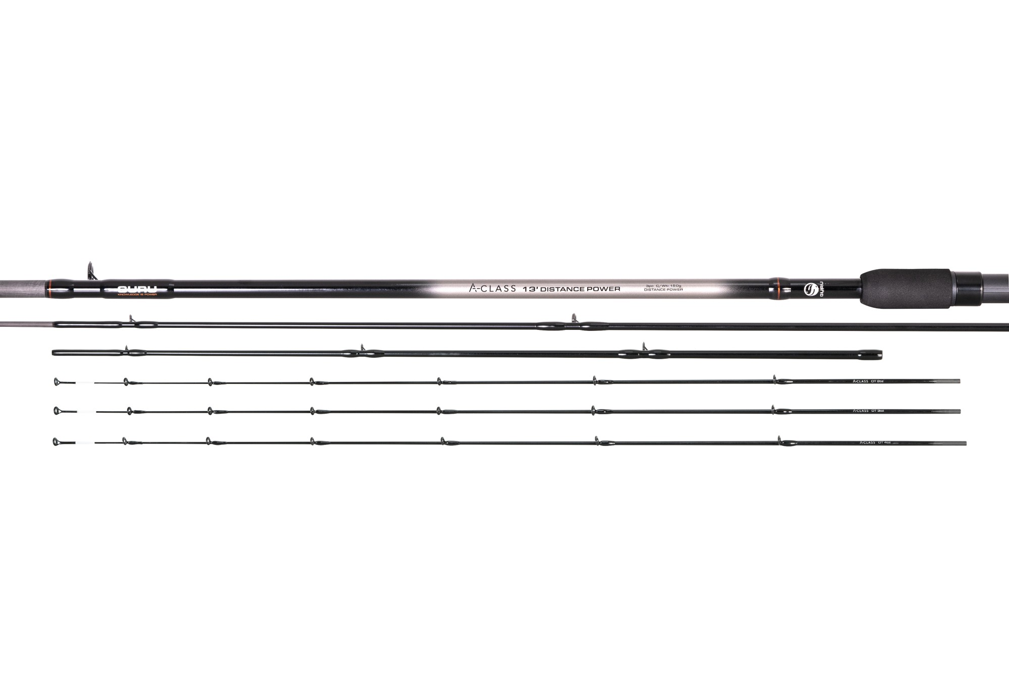 A Guru A-Class sorozat elsősorban a hobbi horgászoknak készült és a legjobb minőséget kínálja elérhető áron. A-Class termékcsalád sikerét követően három további távdobó modellt adtunk hozzá, 12ft, 13ft és 14ft méretben, mindegyik 3 részes.Három spiccel szállítva 2-3-4 oz